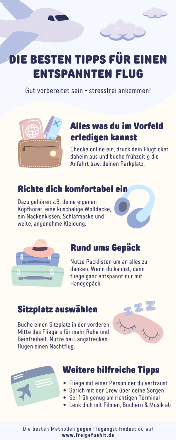 Wusstest du, dass laut aktueller Umfragen in Deutschland 18 % aller Männer und sogar 22 % aller Frauen unter Flugangst leiden? Weltweit betrachtet soll jeder Dritte ein mulmiges Gefühl beim Betreten des Flugzeugs haben und jeder Fünfte sogar Panikattacken bekommen. Über 10 Millionen Flugreisen werden aus Angst vor dem Fliegen jährlich storniert. Umgekehrt schaffen es aber auch unzählige Menschen, ihre Furcht vor dem Fliegen erfolgreich hinter sich zu lassen. Und falls du dich fragst, wie das möglich ist, findest du hier fünf erprobte Tipps!